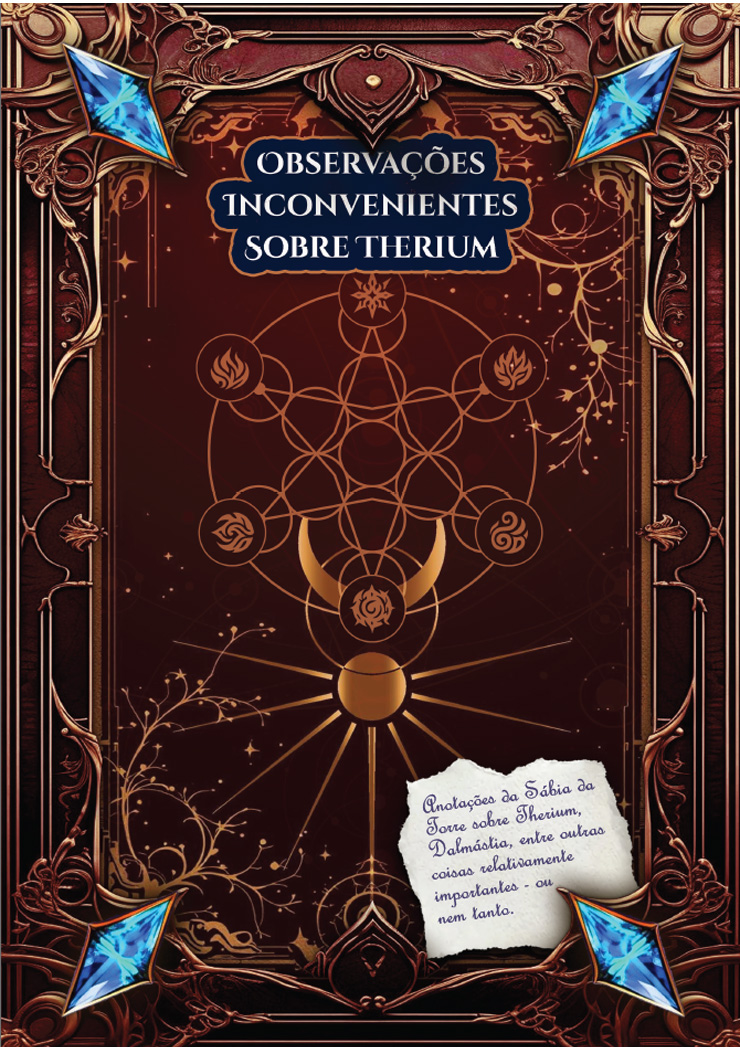 Observações Inconvenientes sobre Therium é um códex narrativo e técnico que reúne anotações sobre geografia, cidades, estruturas políticas, símbolos de poder e a linguagem arcana que molda a própria realidade do mundo de Swordbringer Saga.